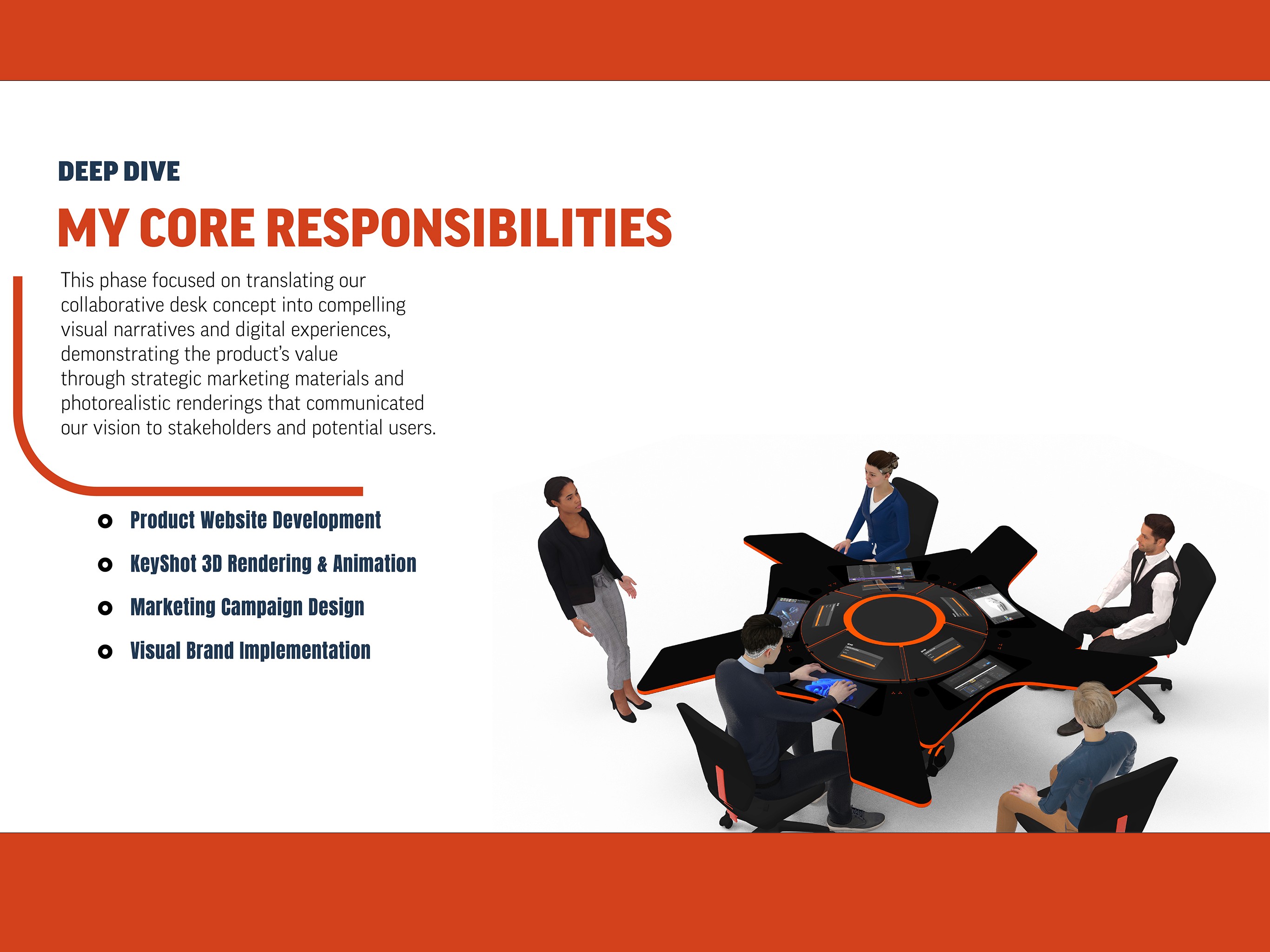 Nexus: A smart collaborative desk system designed to transform creative education environments. This innovative workspace seamlessly integrates digital technology with physical collaboration, featuring height-adjustable surfaces, integrated displays, and intuitive interaction modes that adapt between individual focus work and group collaboration for design students. Developed as a comprehensive group project encompassing user research, product design, business strategy, and market analysis.